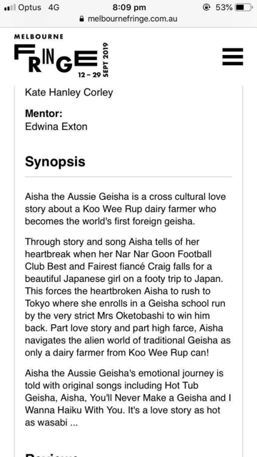 « Ooof @MelbourneFringe #AishaTheAussieGeisha
