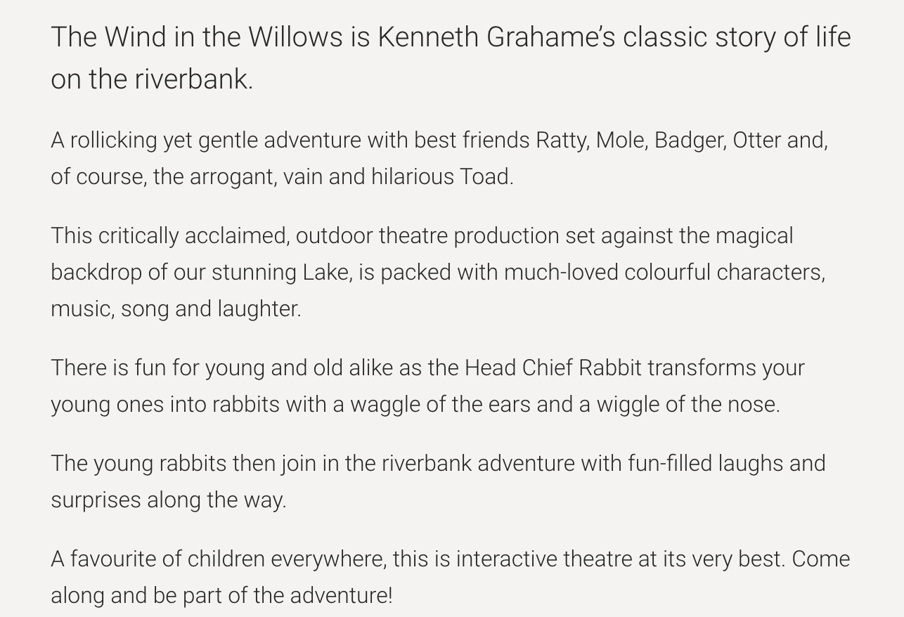 When you see what taxpayer dollars can encourage – like the interactive piece “Every Dollar is a Soldier/With Money You’re A Dragon” and how progressive that is, and then you see something like the cast of The Wind In The Willows – which ignores 40.2% of the London population, but proclaims their own genius at education and diversity – well, one step forward and ten back, innit?