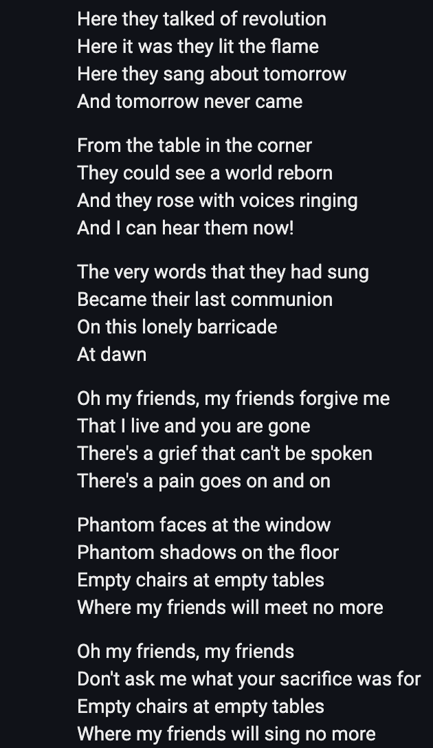 We saw ‘theater people’ of all kinds – even in the military, ‘protest’ this administration and sing from Les Miserablés, and the world applauded and wondered when people were actually going to do something. Like, when – the world asks – are Americans going to re-claim democracy from kleptocracy? When are elected officials on both sides going to rise up (sing that Hamilton clip here please)? When do seated elected officials relinquish their ‘proximity to power’ in favor of common human decency?
