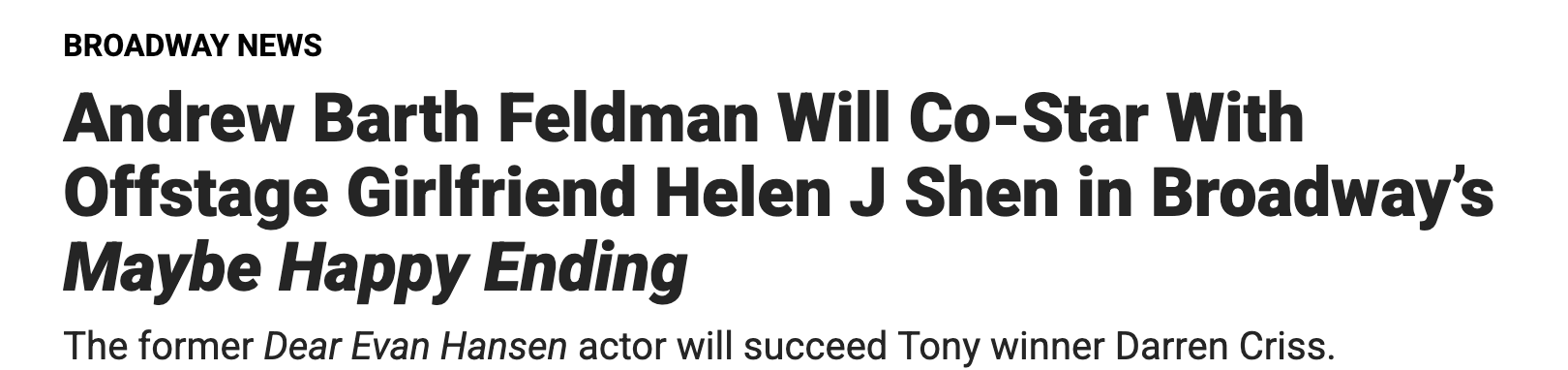 The Fairy Princess realizes it has been a few weeks now since the replacement Casting at Maybe Happy Ending was announced, and the Broadway community- fans and professionals – is divided.